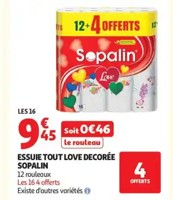 Actuellement en offre chez Auchan Supermarché : SOPALIN Essuie tout love decorée ✅ Valable du 2-01 au 10-01.