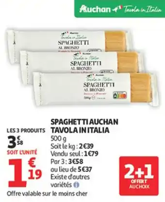 Actuellement en offre chez Auchan Supermarché : Spaghetti auchan tavola in italia ✅ Valable du 13-01 au 24-01.