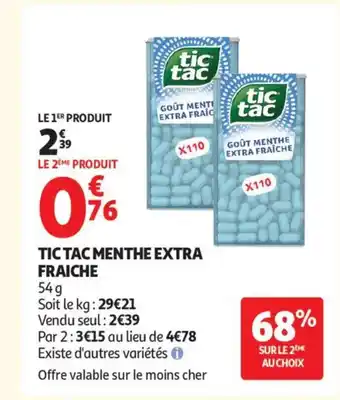 Actuellement en offre chez Auchan Supermarché : TIC TAC Menthe extra fraiche ✅ Valable du 2-01 au 10-01.