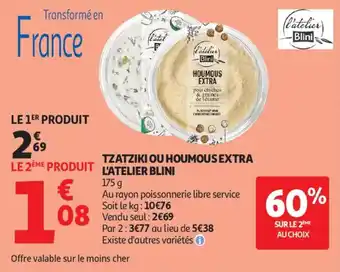 Actuellement en offre chez Auchan Supermarché : Tzatziki ou houmous extra l'atelier blini ✅ Valable du 10-02 au 21-02.