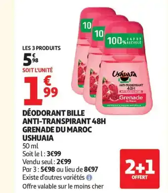 Actuellement en offre chez Auchan Supermarché : USHUAIA Déodorant bille anti-transpirant 48h grenade du maroc ✅ Valable du 2-01 au 10-01.