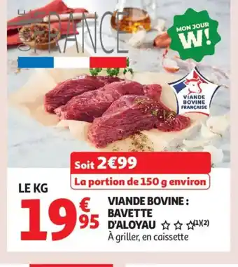 Actuellement en offre chez Auchan Supermarché : Viande bovine bavette d'aloyau ✅ Valable du 17-03 au 21-03.