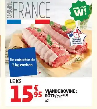 Actuellement en offre chez Auchan Supermarché : Viande bovine: rôti ✅ Valable du 2-01 au 10-01.
