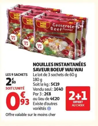 WAI WAI Nouilles instantanées saveur boeuf offres et promotions en ligne chez Auchan Supermarché