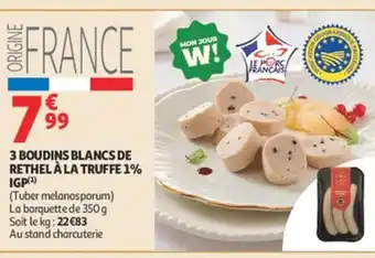 Actuellement en offre chez Auchan : 3 boudins blancs de rethel à la truffe 1% igp ✅ Valable du 16-12 au 31-12.