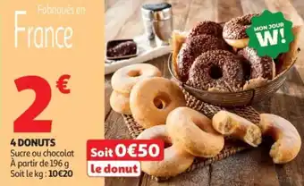 En plus de l'offre 4 donuts, Auchan propose une large gamme de produits. Consultez le Catalogue Auchan hebdomadaire pour découvrir les meilleures offres et promotions. En plus de 4 donuts, il y a aussi : Donuts, Donuts & Donuts - surgelés.