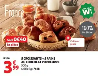 5 croissants +5 pains au chocolat pur beurre 500 g