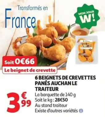Actuellement en offre chez Auchan : 6 beignets de crevettes panés auchan le traiteur ✅ Valable du 27-01 au 8-02.
