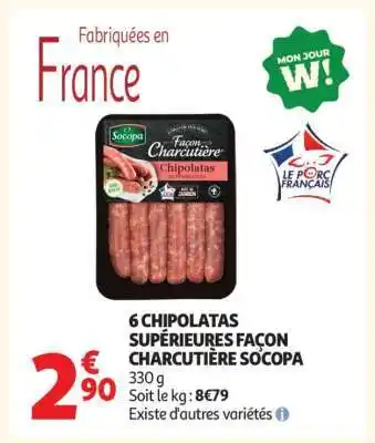 6 CHIPOLATAS SUPÉRIEURES FAÇON CHARCUTIÈRE SOCOPA offres et promotions en ligne chez Auchan