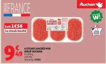 Actuellement en offre chez Auchan : 6 Steaks Hachés Pur Bœuf Auchan ✅ Valable du 17-03 au 22-03.