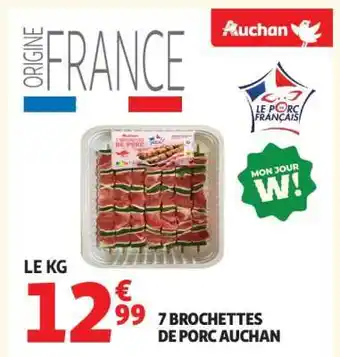 Actuellement en offre chez Auchan : 7 Brochettes De Porc Auchan ✅ Valable du 28-04 au 10-05.