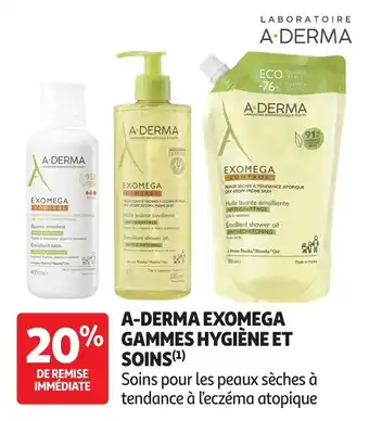 Actuellement en offre chez Auchan : A-derma exomega gammes hygiène et soins ✅ Valable du 4-01 au 25-01.