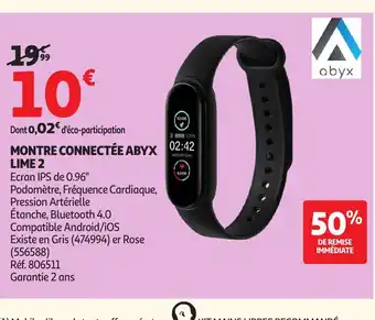 Actuellement en offre chez Auchan : ABYX Montre connectée lime 2 ✅ Valable du 7-01 au 3-02.