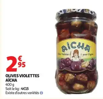 Actuellement en offre chez Auchan : AÏCHA Olives violettes ✅ Valable du 3-02 au 1-03.