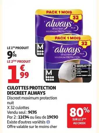 Actuellement en offre chez Auchan : ALWAYS Culottes protection discreet ✅ Valable du 2-01 au 11-01.