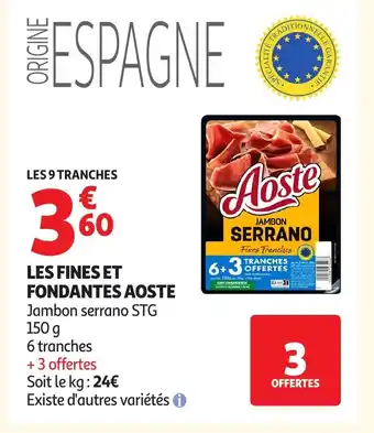 En plus de l'offre AOSTE Les fines et fondantes, Auchan propose une large gamme de produits. Consultez le Catalogue Auchan hebdomadaire pour découvrir les meilleures offres et promotions. En plus de AOSTE Les fines et fondantes, il y a aussi : LE FESTIF FINES ET FONDANTES SERRANO STG MAXI FORMAT “AOSTE”, Le festif fines et fondantes serrano stg maxi format aoste & AOSTE Les grandes tranches.