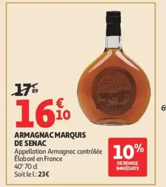 Actuellement en offre chez Auchan : Armagnac marquis de senac ✅ Valable du 16-12 au 31-12.