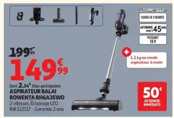 Le prix de l'offre Aspirateur balai rowenta rh6a35wo se trouve également en haut de la page, ainsi que la date à laquelle l'offre est disponible. Vous pouvez également vérifier les prix dans le Catalogue Auchan actuel ou sur le site Internet de Auchan. Les offres vous permettent d'acheter les produits Auchan au prix le plus bas.