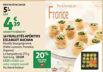 AUCHAN 16 feuilletés apéritifs escargot 170 g