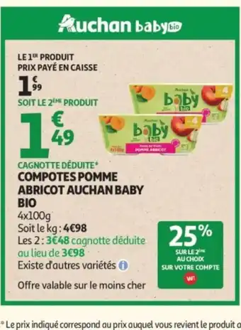 Actuellement en offre chez Auchan : AUCHAN BABY Compotes pomme abricot ✅ Valable du 24-02 au 8-03.
