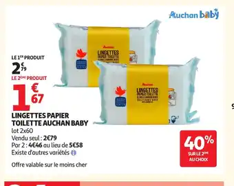 Actuellement en offre chez Auchan : AUCHAN BABY Lingettes papier toilette ✅ Valable du 6-01 au 18-01.