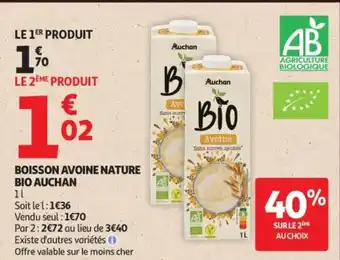 Actuellement en offre chez Auchan : AUCHAN Boisson avoine nature bio ✅ Valable du 10-02 au 22-02.