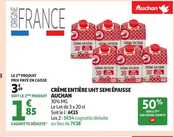 Offre AUCHAN Crème entière uht semi épaisse chez Auchan
