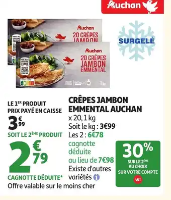 Actuellement en offre chez Auchan : AUCHAN Crêpes jambon emmental ✅ Valable du 2-01 au 11-01.