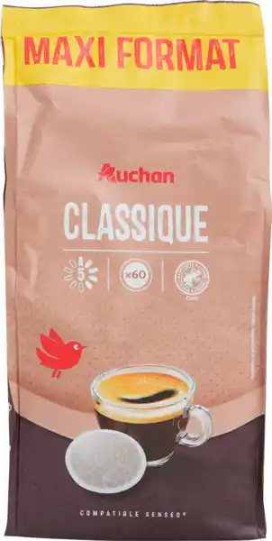 En plus de l'offre Auchan dosettes de café classique auchan, Auchan propose une large gamme de produits. Consultez le Catalogue Auchan hebdomadaire pour découvrir les meilleures offres et promotions. En plus de Auchan dosettes de café classique auchan, il y a aussi : AUCHAN Dosettes de café classique, SENSEO Dosettes de café classique & Barissimo 56 dosettes de café classique.