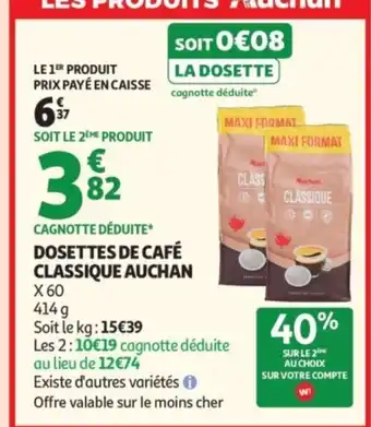 Actuellement en offre chez Auchan : AUCHAN Dosettes de café classique ✅ Valable du 3-03 au 15-03.
