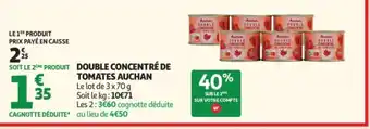 Actuellement en offre chez Auchan : AUCHAN Double concentre tomates ✅ Valable du 3-03 au 15-03.