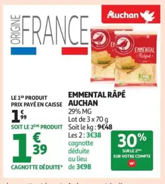 AUCHAN Emmental râpé offres et promotions en ligne chez Auchan