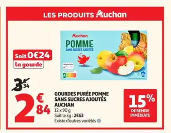 AUCHAN Gourdes purée pomme sans sucres ajoutés 12 x 90 g