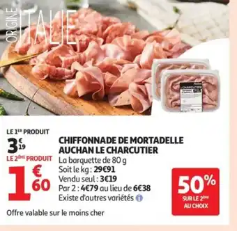 Actuellement en offre chez Auchan : AUCHAN LE CHARCUTIER Chiffonnade de mortadelle ✅ Valable du 17-02 au 28-02.
