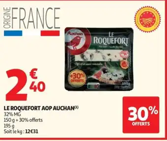 Actuellement en offre chez Auchan : AUCHAN Le roquefort aop ✅ Valable du 10-02 au 22-02.
