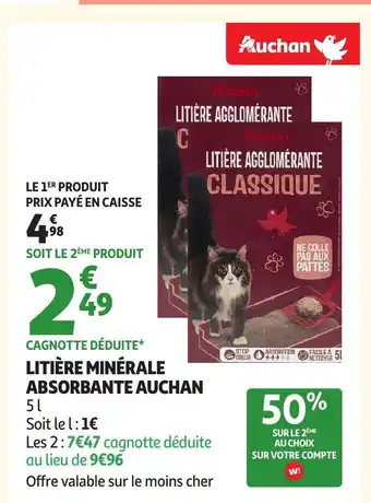 AUCHAN Litière minérale absorbante offres et promotions en ligne chez Auchan