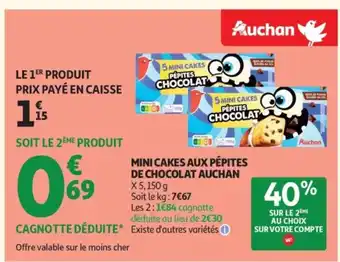 Actuellement en offre chez Auchan : AUCHAN Mini cakes aux pépites de chocolat ✅ Valable du 27-01 au 8-02.