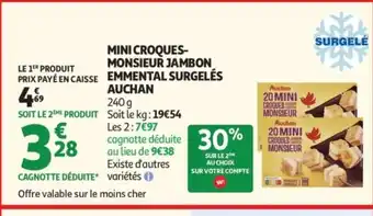 AUCHAN Mini croques- monsieur jambon emmental surgelés offres et promotions en ligne chez Auchan