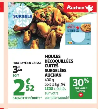 Offre AUCHAN Moules décoquillées cuites surgelées chez Auchan