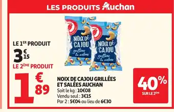 Offre AUCHAN Noix de cajou grillées et salées chez Auchan