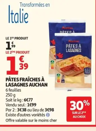Offre AUCHAN Pâtes fraîches à lasagnes chez Auchan