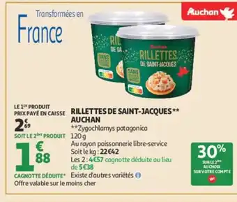 Actuellement en offre chez Auchan : AUCHAN Rillettes de saint-jacques ✅ Valable du 16-12 au 31-12.