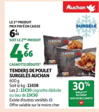 Actuellement en offre chez Auchan : AUCHAN Tenders de poulet surgelés ✅ Valable du 26-12 au 4-01.