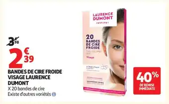 Actuellement en offre chez Auchan : BANDES DE CIRE FROIDE VISAGE LAURENCE DUMONT ✅ Valable du 21-04 au 3-05.