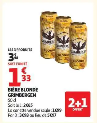 Actuellement en offre chez Auchan : Bière Blonde Grimbergen ✅ Valable du 14-04 au 18-04.