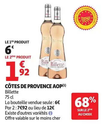 Billette Côtes de provence aop : offres et promos Auchan à découvrir