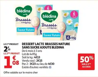 Offre BLEDINA Dessert lacte brasses nature sans sucre ajoute chez Auchan