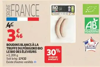 Boudins blancs à la truffe du périgord bio le bio des éleveurs : offres et promos Auchan à découvrir