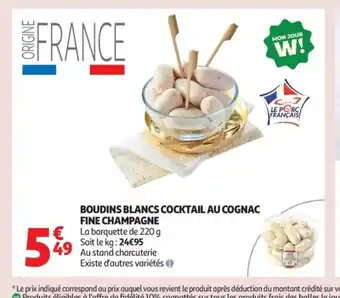 Offre Boudins blancs cocktail au cognac fine champagne chez Auchan