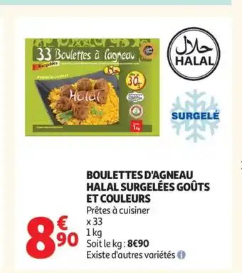Actuellement en offre chez Auchan : Boulettes d'agneau halal surgelées goûts et couleurs ✅ Valable du 3-02 au 1-03.